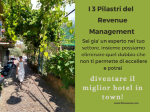 Mentre noi lavoriamo con voi per stabilire i bisogni necessari della tua proprietà nell’applicazione del giusto Revenue Management e per fornire soluzioni su misura, è di vitale importanza per il successo della tua attività, che il personale sia preparato a comprendere fino in fondo il concetto e l’importanza di una pianificazione strategica del business, di cui noi ci impegniamo ad illustrare gli obbiettivi, i mezzi, gli strumenti e le azioni necessarie in una prospettiva di medio/lungo periodo.